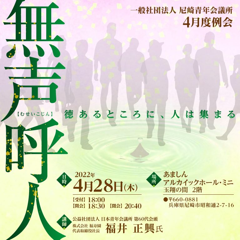 理事長所信でもある「原点回帰~未来のために~」のスローガンを掲げ、尼崎青年会議所が更に団結し、市民と共に考え、こども達と夢を語りあい、「新しい尼崎の未来」を創造します。